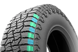 El diseño de picos irregulares en los hombros elimina el barro y la nieve rápidamente. La excelente capacidad de manejo ofrece un rendimiento de conducción espectacular.